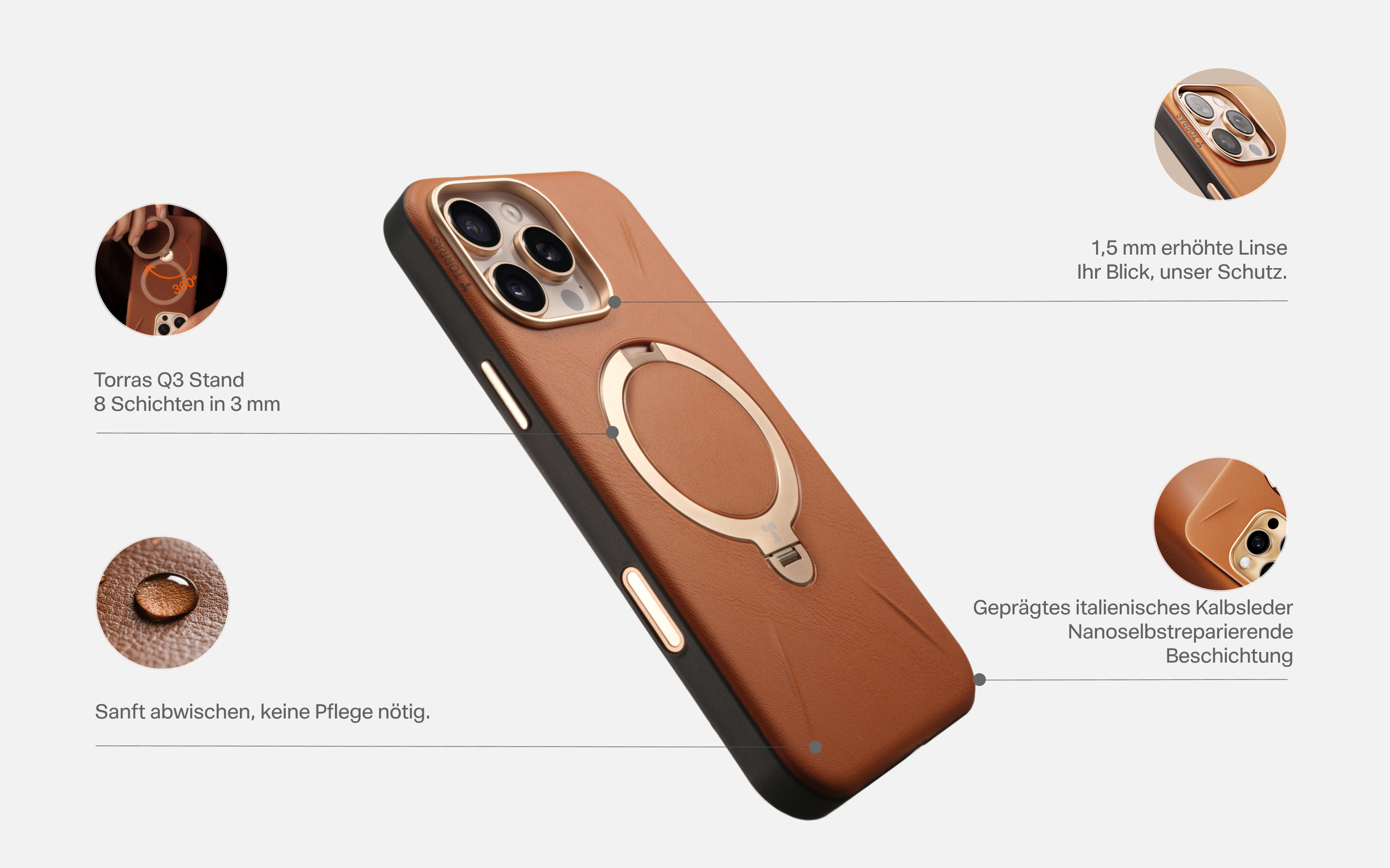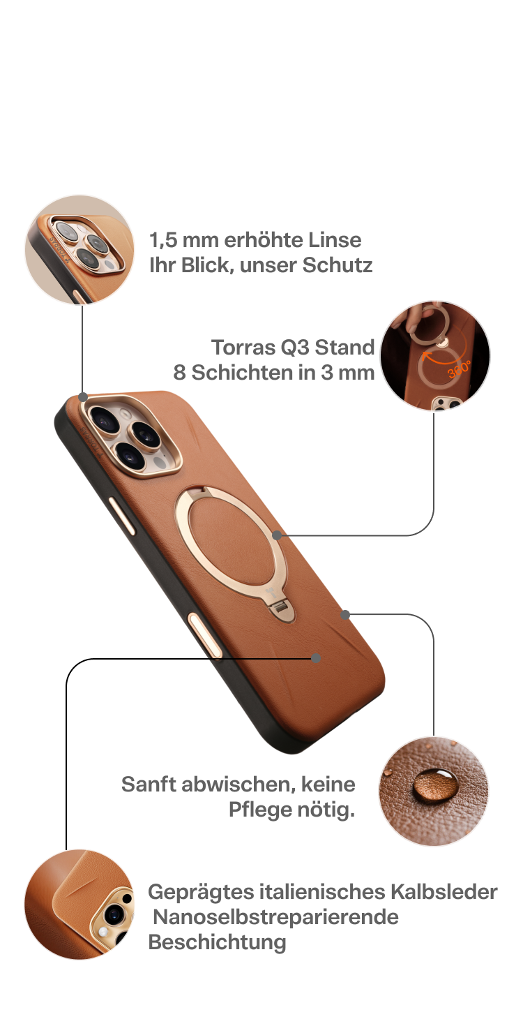 Hergestellt aus Vollsilikon-PU mit einer geprägten Textur, die von italienischem Kalbsleder inspiriert ist und ein lederähnliches Gefühl vermittelt.