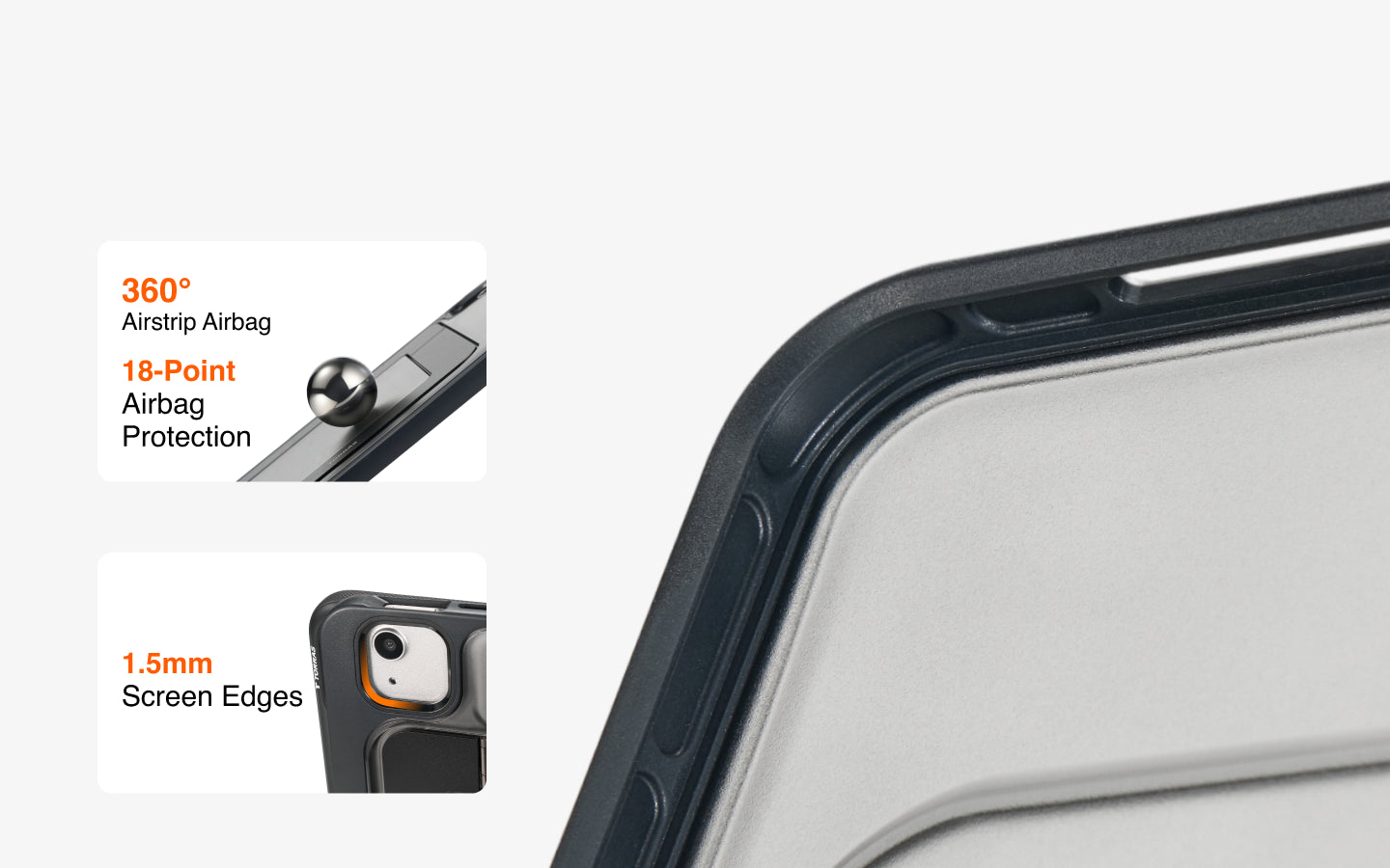 Engineered with a reinforced bezel that rises above the camera lens, providing enhanced protection against drops and scratches. Built tough to shield your iPad's most delicate part.