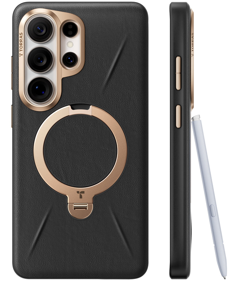TORRAS Ostand Q3 VegSkin for Samsung Galaxy S26 Ultra Case Leather, 360 Magnetic Stand, Fit for MagSafe, Premium Organic Silicone Leather, Globally Certified Eco-Leather, for S26 Ultra Case, Camera Protection, Obsidian Black