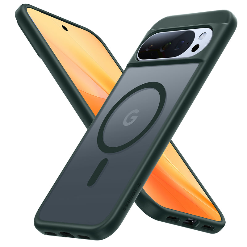 TORRAS Magnetic for Pixel 10 Pro XL Case, Strong Magnet fit for MagSafe, 12FT Mil-Grade Protection, Slim Translucent Matte Phone Case for Google Pixel 10 Pro XL Case with Multi-Color Buttons, Green